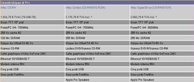 | Les prix du nouvel Imac sont exposés dans le tableau ci-dessous : |